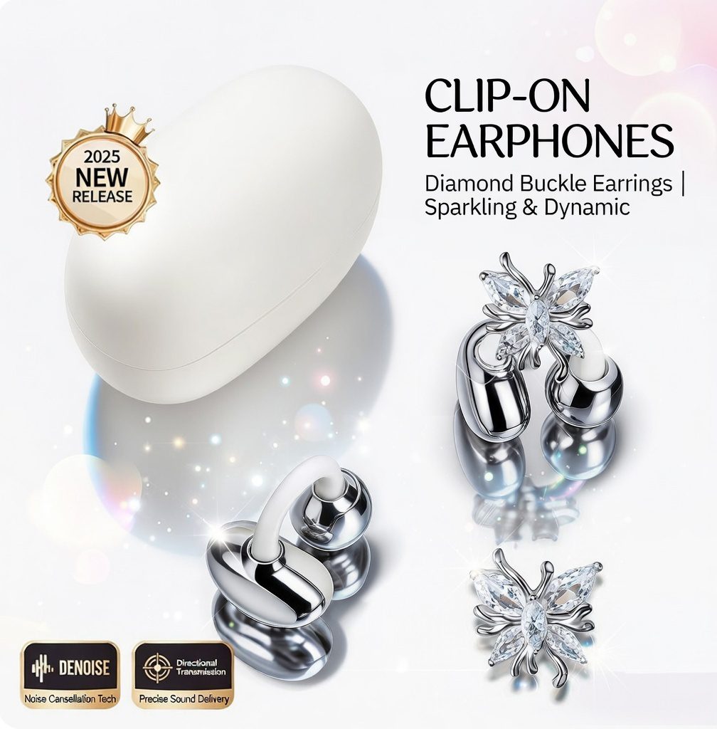 • Clip-on ear type (bilateral stereo) – Easy to wear, no piercing needed, trendy for girls & guys.