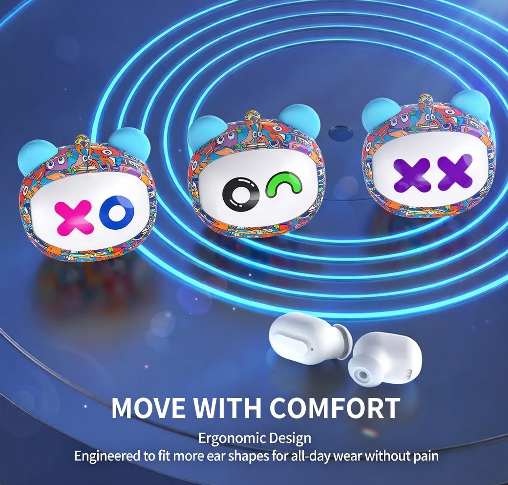 - Design: In-ear, rotatable for easy wear/storage, cute cartoon characters