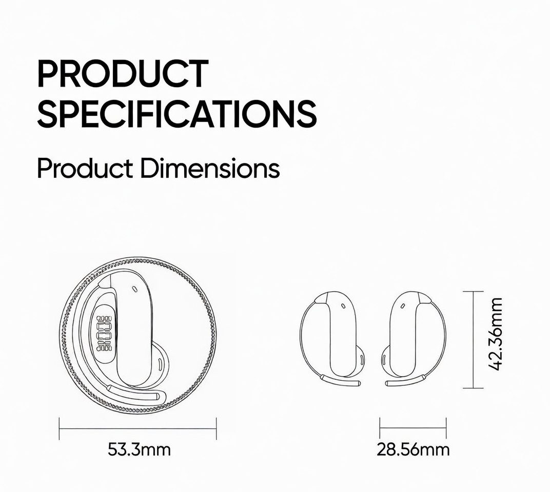 - Wearing Style: Ear-mounted / Over-Ear Hook (Sporty & Secure)